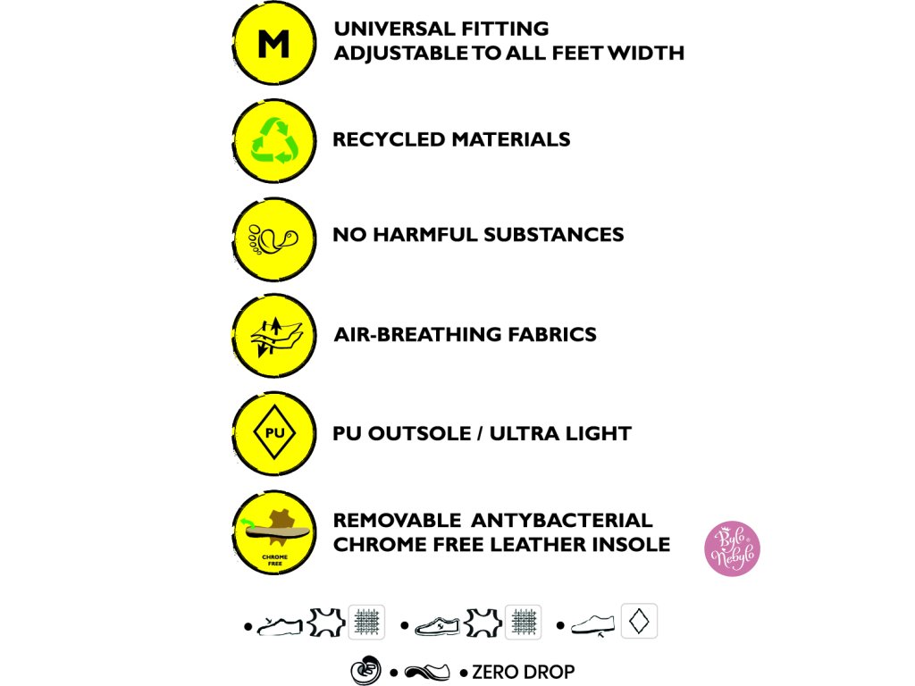 - Podélně i příčně flexibilní podešev bez jakékoliv podpory klenby.