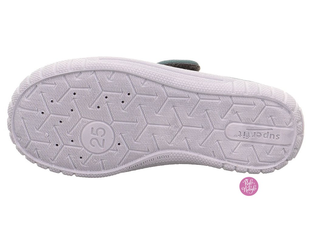 Dětské bačkory Superfit mají extrémně ohebnou podešev a jsou vyrobeny z textilu. Tato dětská obuv má zpevněný opatek, který podporuje správné návyky chůze a zajišťuje stabilitu při chůzi. Podešev má protiskluzovou strukturu a je perforovaná. Otvory na podešvi zabraňují případnému pocení. Dětské bačkory Superfit jsou vhodné pro užší a střední nohu.