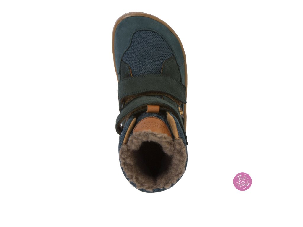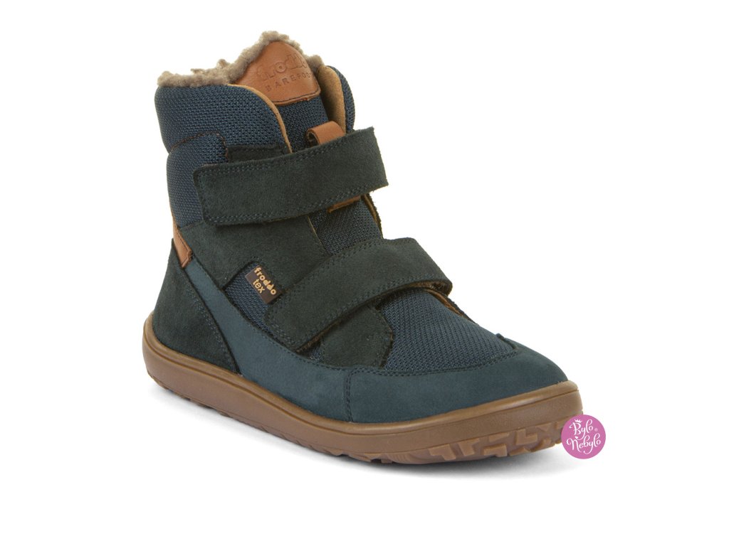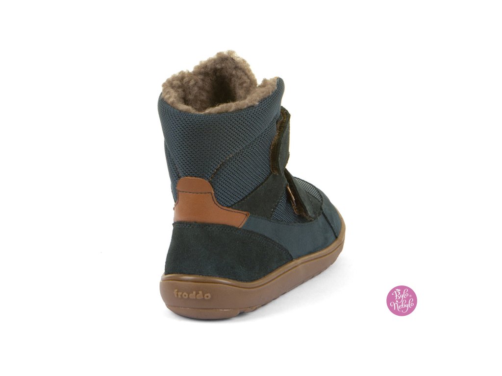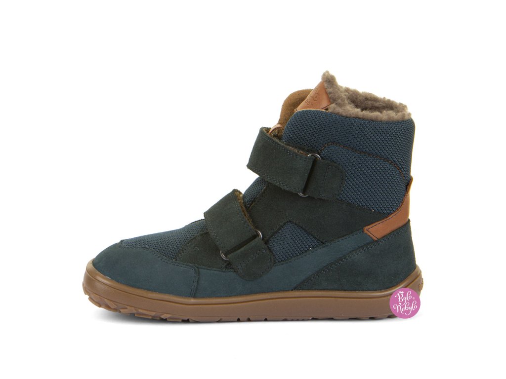 Fantastické dětské zimní boty s membránou Froddo UP TEX Winter. Svršek v kombinaci vodoodpudivé přírodní kůže a textilu v tmavě modré barvě. Vnitřní část je zateplená ovčí vlnou.