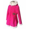 Zimní, zateplený softshellový kabát v barvě fuchsia pro holky s měkkým beránkem a koženým štítkem ve tvaru motýle za dílny UNIQUE KIDS.