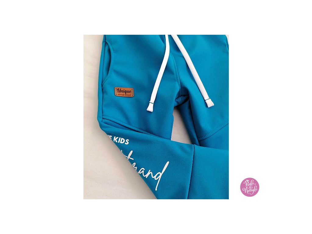 Dětské softshelové kalhoty UNIQUE kids s přepracovanými kapsami a rostoucími náplety.