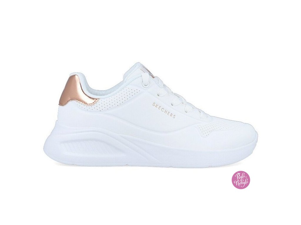 Pozvedněte své tenisky na novou úroveň díky polstrovanému pohodlí ve Skechers Uno Lite. Tyto módní tenisky se strečovými tkaničkami mají syntetický perforovaný horní díl z materiálu durabuck s metalickým lemováním, přizpůsobitelným zapínáním Skechers Adaptive Closure, stélku Skechers Air-Cooled Memory Foam® a klínovou platformu s polstrovanou mezipodešví.