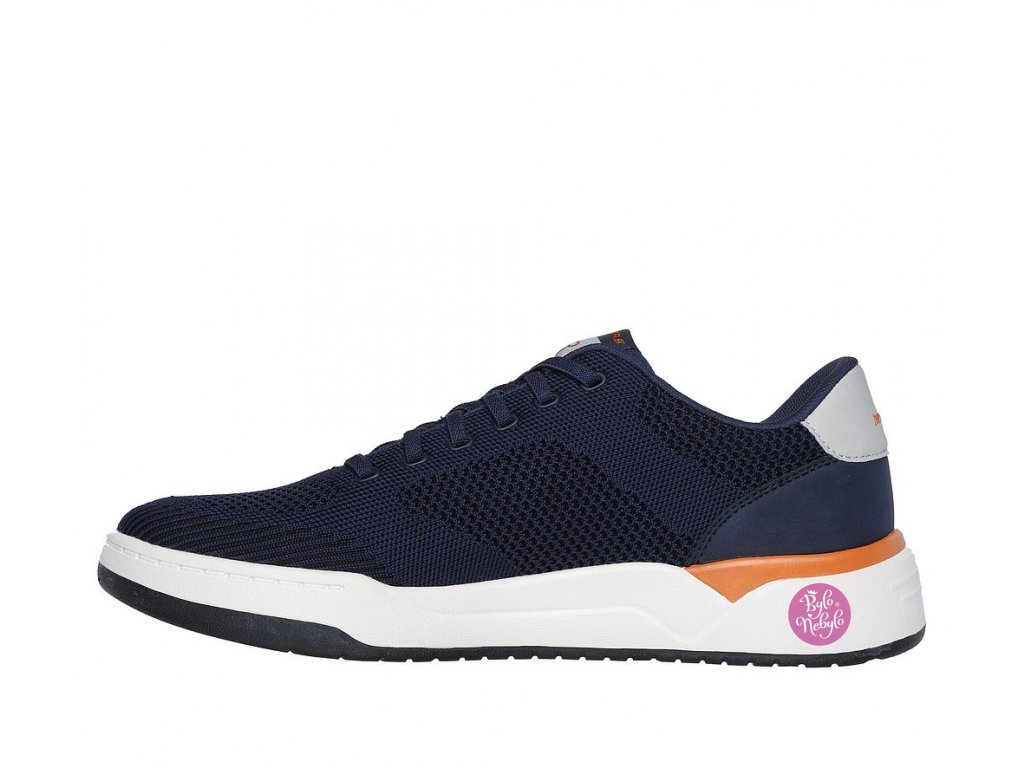 Tento ležérní model má horní díl z pleteniny a syntetického materiálu se strečovými tkaničkami, uhlím obohacenou pohodlnou vložku se vzduchem chlazenou polstrovanou paměťovou pěnou Skechers Air-Cooled Memory Foam® a polstrování Skechers Goga Mat Arch™ pro lepší oporu.