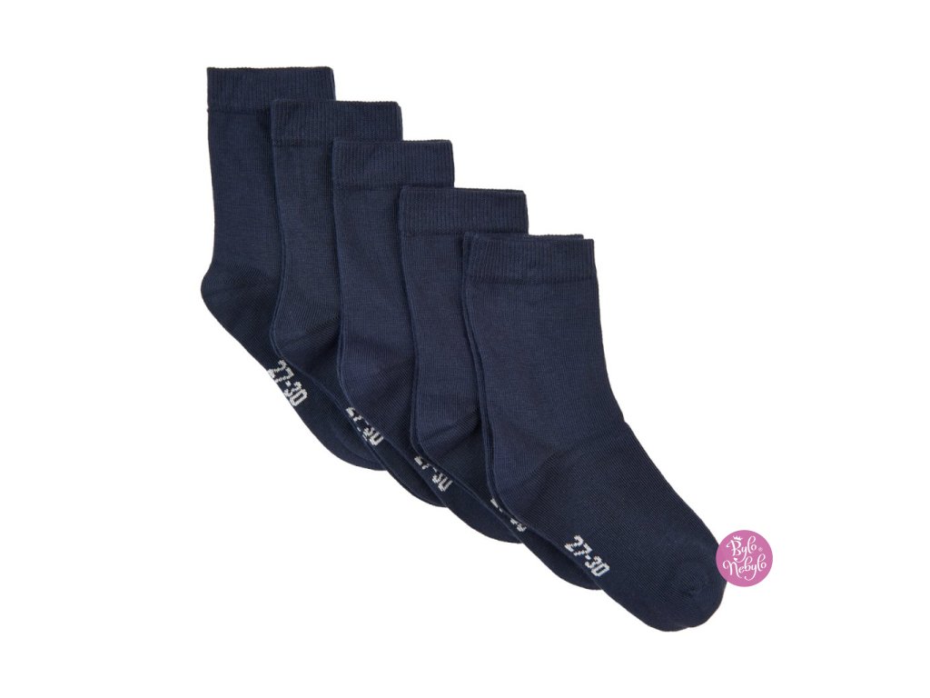 Skvělé 5‑balení jednobarevných ponožek v odolné kvalitě. Ponožky jsou tvarované na patě i špičce a mají žebrovaný lem v horní části, který zajišťuje dobré držení. Balení obsahuje pět párů ve stejné barvě a je k dispozici v několika variantách pro chlapce i dívky. Certifikace STANDARD 100 by OEKO‑TEX® č. 15.HTR.58706.