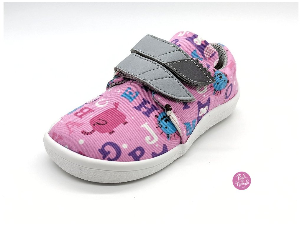 Barefoot tenisky Beda Words jsou lehké, flexibilní a pohodlné pro dítě se širokým chodidlem a vysokým nártem, vhodné pro vnitřní i venkovní použití v létě.