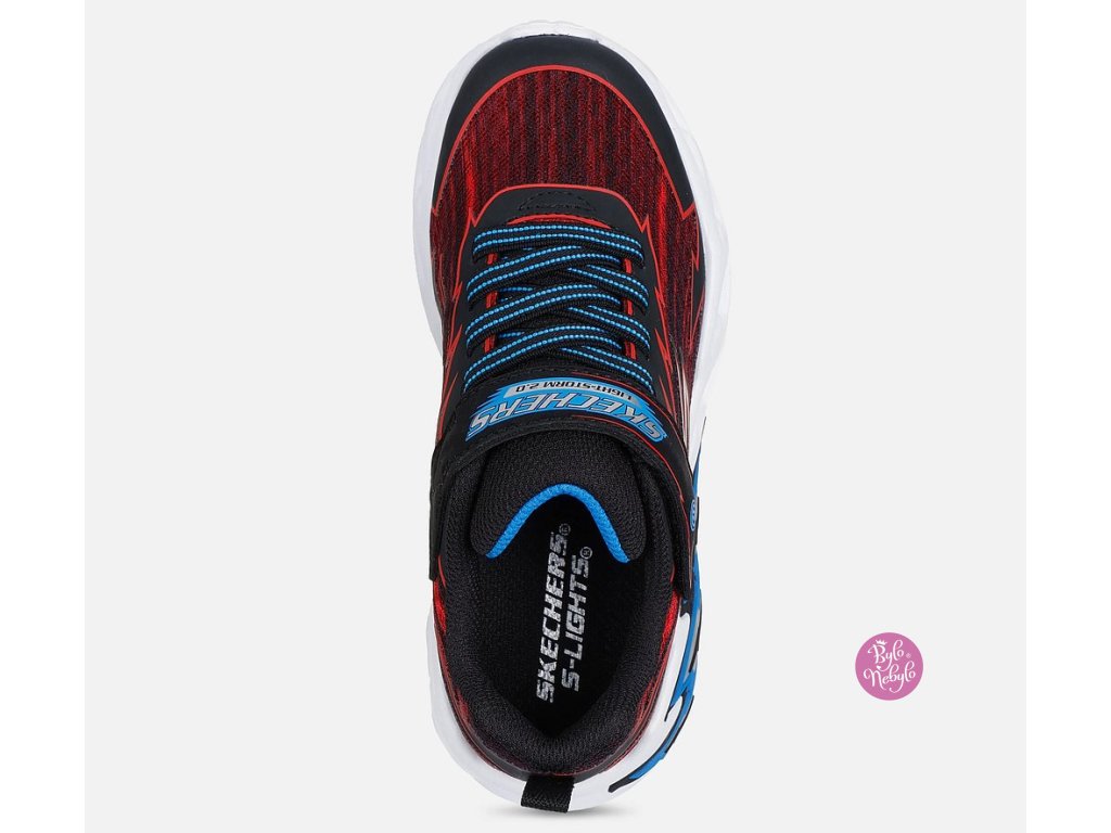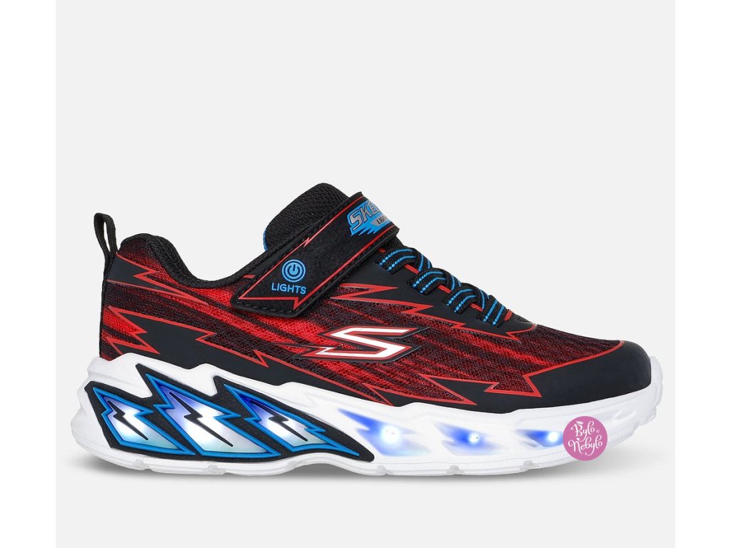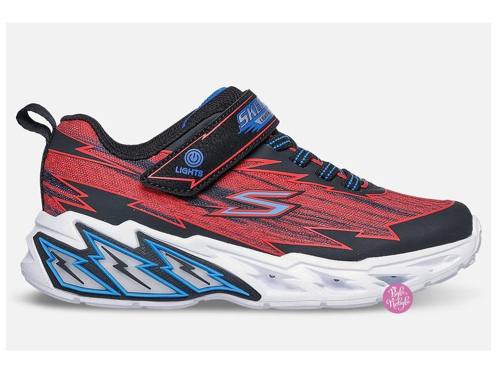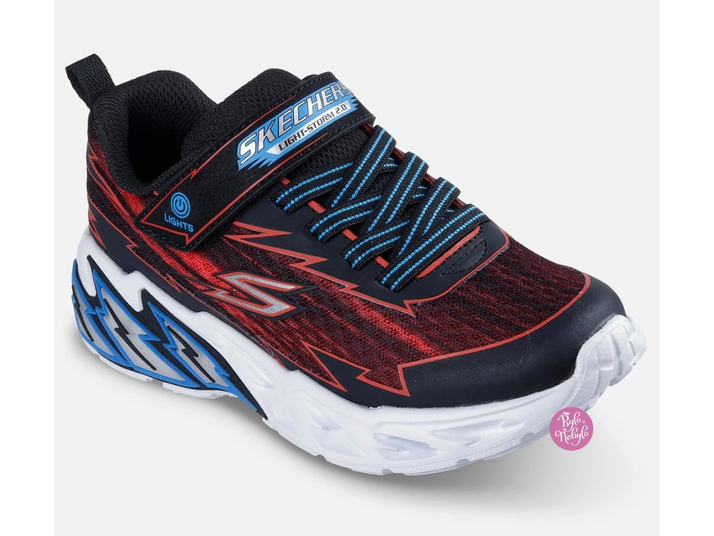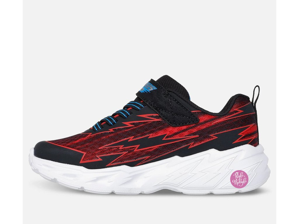 Blýskání zábavy v botách Skechers S-Lights®: Light Storm 2.0 – Bolt-Brights. Tyto tenisky ve stylu blesků mají syntetický horní díl za síťoviny s bouřlivými efekty, přizpůsobitelným zapínáním Skechers Adaptive Closure, strečové tkaničky a svíticí mezipodešev tlumící nárazy.
