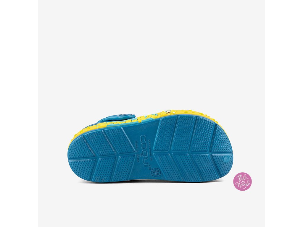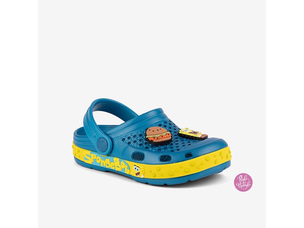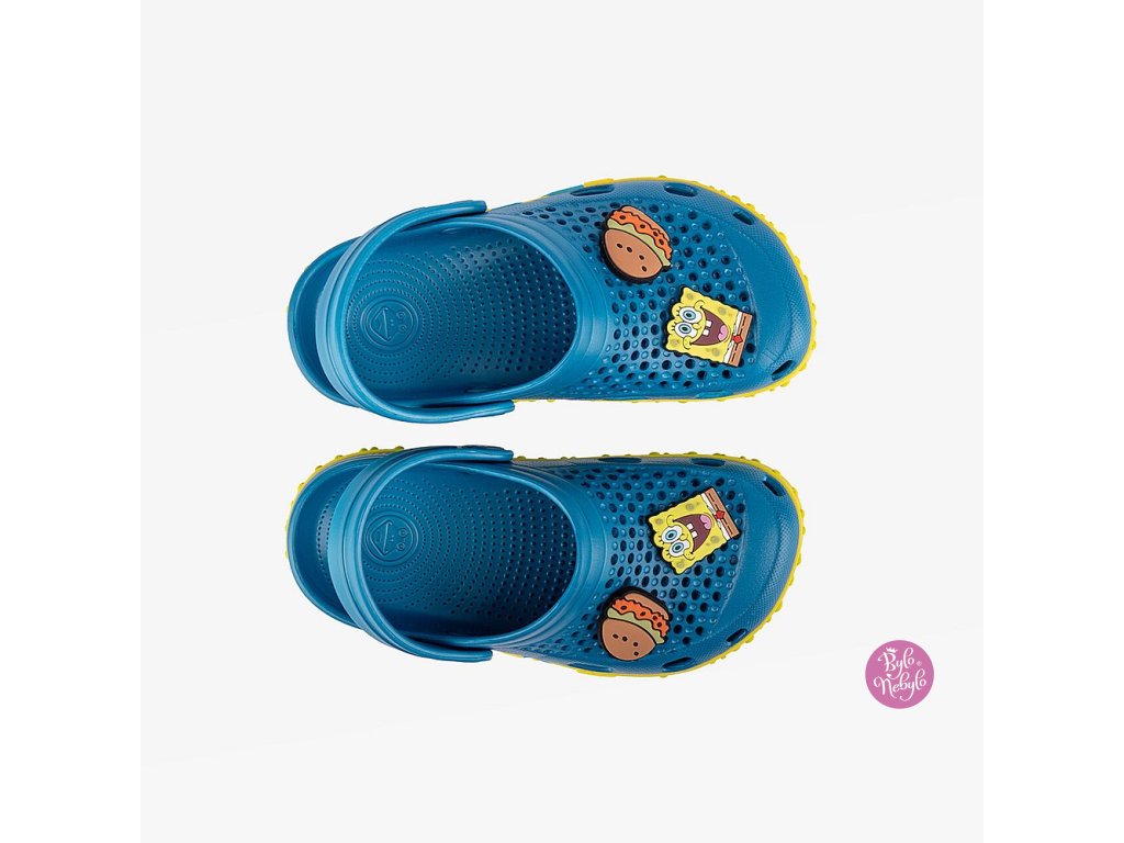 Chlapecké clogsy COQUI LINDO v modré barvě z nové kolekce SpongeBoba. Mají hravý design s ozdobnými prvky na svršku, které korespondují s hlavním hrdinou SpongeBobem. Obuv je vyrobena z odlehčeného materiálu CoquiAir. Ve svršku jsou ventilační otvory pro prodyšnost a patní pásek, který zajistí pevné držení na noze. Protiskluzová podrážka poskytuje stabilitu při chůzi, takže jsou ideální pro aktivní děti, které milují dobrodružství v Zátiší Bikin!
