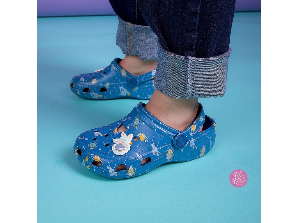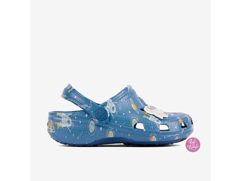 Chlapecké nazouváky Coqui Big Frog Printed. Originální potisky pro neomezenou fantazii. Lehké a pohodlné, dokonale sedí díky elastickému patnímu pásku.