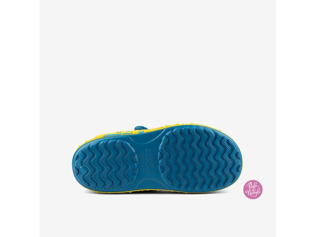 Sandály Yogi pro všechny malé děti, které mají rády pohyb a veselé barvičky. Pohodlné a bezpečné díky patentovaným upínacím prvkům. Neklouzavý materiál CoquiAir.