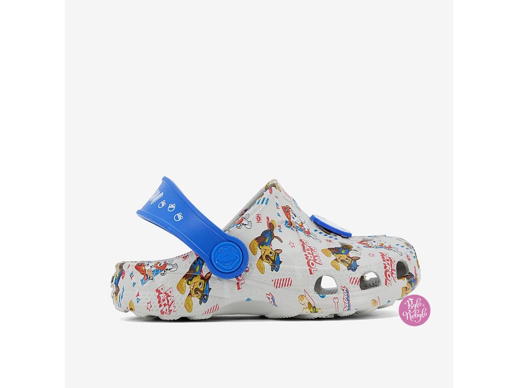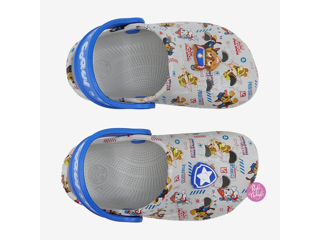 Dětské clogsy Little Frog s hrdiny Tlapkové patroly. Veselé žabičky ve výrazných barvách. Lehké a pohodlné, výborně sedí díky elastickému patnímu pásku. Neklouzavý materiál CoquiAir. Design by Coqui.
