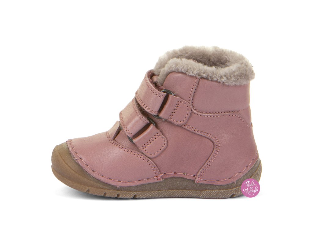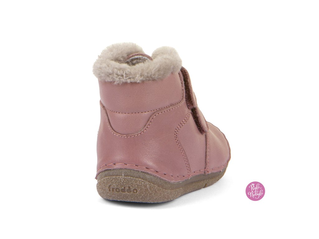 Dětská zimní kotníková obuv Froddo s flexible gumovou podrážkou. Zpevněný opatek drží nožičku dítěte ve správné poloze. Vyrobeny pouze z přírodních materiálů, barvené rostlinnými barvivy, použité lepidlo na bázi vody, bez Chromu VI.